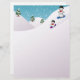 Winterly grafische illustratie met twee schattige sneeuwpoppen in een sneeuwomgeving.