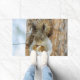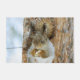 Het ontwerp bevat een close-up foto van een schattige eekhoorn met zijn poten samen. Het staat in een sneeuwlandschap met een sneeuwbal tussen zijn poten. Het is een volstrekt schattige scène.