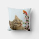 Cute Tabby Cat & Little Bird on Light Blue Kussen