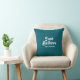 This cute teal pillow features a Bible verse from the Gospel of Mark and teal stripes on the back.