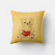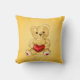 Kute gele kussens met een schattige teddybeer die een hart vasthoudt en je hypnotiseren met zijn niet-knipperende blik.