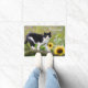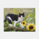 Cute tuxedo cat op een boomtak met zonnebloemen - deurmat