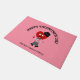 Voeg met deze Cute Valentijnsdag Red Heart Pink Monogram Doormat een pop kleur toe aan uw veranda of patio decor. Het is ontworpen met een aanpasbare roze achtergrond en een klein man van het rode hart. Hij is opgekleed in een zwart pet en grijze bretels met een klein hart in zijn hand. De tekst is "Happy Valentijnsdag" in vetgedrukte zwarte letters. Gepersonaliseerd met familienaam onder het afbeelding van de kunst. KLIK PERSONALILZE DE OPTIE VAN DE SJABLOON EN VOLG DE PROMPT.