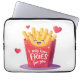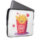 A cute and colorful cartoon illustration of a red French fries carton with a happy kawaii smiling face. The design features a floating red heart and the romantic funny pun quote "I only have FRIES for you". The image has a white sticker border, making it perfect for Valentine's Day greeting cards, fast food lovers, and humorous romantic gifts. Isolated design.