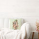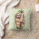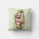 Een kussen met een schattig waterverf ontwerp met een schattige luiaard die aan een boomtak hangt, omringd door groene tropische bladeren. Lichte olijfgroene achtergrond.