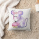 Dit is een origineel gemengd mediaschilderij van een grillige paarse muis met een roze cupcake.
