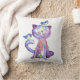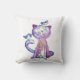 Cute Whimsical Paars Cat met vogels Kussen