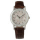 Een horloge met een schattig Scandinavisch stijlpatroon. Winterpijnbomen, beren, rendieren en eekhoorns. Lichtbruine kleur.