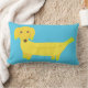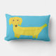 Voeg een bananen toe aan je bank of bed met deze schattige kussen. Het is een illustratie van een dachshund-hond gemaakt van gele bananen tegen een felblauwe achtergrond. De achterkant heeft een coördinatiepatroon van gele bananenhonden en groene palmbladeren.