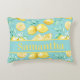 Accent kussen met een schattig geel citroenpatroon op lichtblauw en ruimte om een naam aan beide zijden toe te voegen
