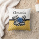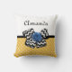 Cute Yellow Stippen Blue Roos Chevron Bow met naam Kussen
