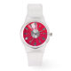 Tijd voor eten! Een rood en roze wijzerplaat gemaakt van lepels en vorken. Hoe geweldig is dat voor een geweldige roze horloge! Het roze polshorloge geld kan kopen! Zie het blauwe zusje afbeelding 'Bestek O'clock.'
