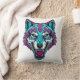 Cyberpunk Neon Wolf - Synthwave Robotic Animal Kussen