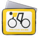 Fietser rijdt op zijn fiets computer sleeve dat een minimalistisch icoon toont van een zwart fietssilhouet met gele bovenkant en jouw tekst op een witte achtergrond met gele rand. Dit coole ontwerp is een sjabloon en het is volledig aanpasbaar. Personaliseer het en verander tekst met monogram, naam of uw bericht.