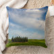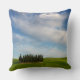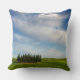 Gooi een kussen met een groep cyperbomen in een landschap met groene heuvels en gele bloemen onder prachtige witte wolken bij Torrenieri in de Val d'Orcia (Orcia) in Toscane (Italië).