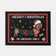 Feestelijke teckel ontwerp met een pup in een Santa hat en trui met een speelse "HO HO HO" banner - perfect voor vakantie geschenken en inrichting.
