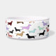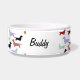 Kute bowl voor je huisdier om te eten of uit te drinken. Het kenmerkt veel kleine dachshund-honden overal in veel kleuren. Er is een ruimte om de naam van uw huisdier aan te passen.