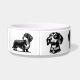 Deze hondenkom is een gepersonaliseerd en stijlvol accessoire voor uw teckel. De kom heeft verschillende minimalistische iconen van dachshunds erop gedrukt. U kunt ook de naam van uw hond toevoegen onder de pictogrammen, waardoor het een uniek en speciaal item is. De kom wordt ontworpen voor zowel voedsel als water, en het is gemakkelijk schoon te maken en duurzaam. Deze hondenkom is een perfect cadeau voor elke hondenliefhebber of teckel fan.