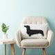 Dachshund silhouette op beige gekleurde achtergrond en gestript terug. Personaliseerbaar.