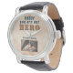 Daddy Hero Waterverf Father`s Day Photo Watch. Pap citeert van dochter of zoon naar de speciale held in hun leven. Voeg je foto, namen en jaar toe. Je kunt papa veranderen in papa, papa, pap,... De achtergrond is blush oranje waterverf. Een perfect cadeau en een lief Vaderdag cadeau voor papa.