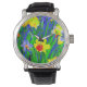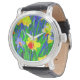 Vrolijk horloge met een impressionistisch digitaal schilderij (van foto) van heldere lente narcissen.