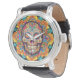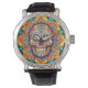 Een levendig en ingewikkeld afbeelding met een traditionele Mexicaanse suikerschedel, versierd met kleurrijke bloemetjes en ingewikkelde patronen. Perfect voor Dia de los Muertos feesten of voor het toevoegen van een vleugje Mexicaanse cultuur aan uw ruimte.