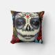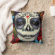 Levendige florale dag van het dode afbeelding op een heerlijk kussen. Rijke juweelbloemen omringen het gezicht van een vrouw, geschilderd voor de Mexicaanse Dag van de Dood. met uw keus van achtergrond en omgekeerde kussen kleur. Neem de tijd om de rozen te ruiken...