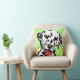 Kleurrijke hondenkunst met witte Dalmatiaan met zwarte vlekken tegen een lichtgroene achtergrond en gele cirkels