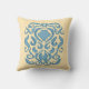 Damask robins oeblauw oude wereldzeepkussen, ontworpen door Kristie Hubler, heeft een oud damasontwerp van wereldstijl, een herhaald patroon op voorzijde, een enkel patroon op achterzijde, met een blauwgroen blauw grafisch damesmotief, en een cramy gele perzikgoudachtergrond.