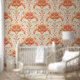 Damast luxe textuur van perzik lelie bloem bloesem behang