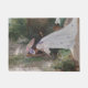 Dit ontwerp toont een schilderij van de Franse kunstenaar Victor Gabriel Gilbert (1847-1933). Het show een elegante jongedame die een lange witte jurk draagt. Ze is in een tuin en ze houdt een gieter vast als ze om haar planten en bloemen geeft. Er is ook een kleine witte hond zitten op een bankje in de tuin. De dame houdt een roze parasol vast. Tegen de wand van het huis van de vrouw staat een houten latwerk waar ook bloeiende planten groeien.