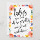 Een elegant snijrand bruiloft bord, heeft de tekst "Dames jullie zien er nu zo mooi uit ga nu dansen" in een extravert lettertype, de borstel textuur geeft een spontane en speelse sfeer. De achtergrondkleur kan worden aangepast aan uw behoeften en voorkeuren, neem contact met me op als u een speciale vraag heeft.