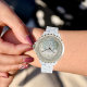 Dames Winter Bos Rhinestone Horloge – Witte Emaille – Aangepast Kerstcadeau.