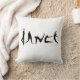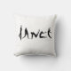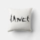 De opvallende zwarte en witte kussen hebben het woord "Dans" gespeld met dansende silhouetten van mensen in danspose.
