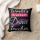 Je dansinstructeur zal graag met deze mooie decoratieve gooikussens vervloeken. "World's Greatest Dance Teacher" is bedrukt in levendig parelwit, magenta roze en lila paars. Verlaat een nota op de rug van de kussen voor een heerlijke verrassing of personaliseer het meer door "aan te passen het!" te klikken knoop