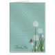 witte pufbloemen met vlinder op de onderdompeling van turquoise en gouden polka stip achtergrond voor dank u