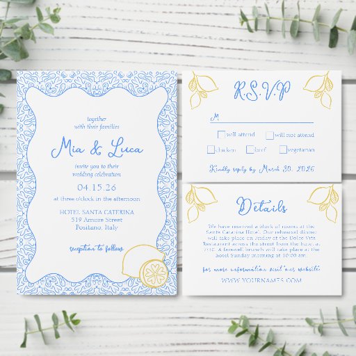 Mediterranean Lemon and Blue Tiles Italian WeddingOntworpen door Sarah K