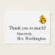 Je hebt een traktatie hier! Deze kunst is een combinatie van Gina Jane's design waarvoor ik EXCLUSIEVE RECHTEN heb om te gebruiken op Zazzle wanneer zelfs haar / dat van haar bedrijf CU wettelijk verboden is. Geniet ervan! Als leraar, toen ik met name basisschoolkunst onderwees, kreeg ik gemakkelijk meer dan 100 kerstcadeaus per jaar, en ik besteedde het grootste deel van mijn kerst aan het schrijven van 100 dankjewel! Sommigen zeiden dat ze geen bedankkaarten geven, maar de kinderen kijken ernaar uit en verdienen ze, dus ... dit zou een zoete oplossing zijn. Ik heb het gemaakt op het mollige VISITEKAARTJE. Er zitten er 100 in de verpakking. Er is genoeg ruimte om de naam van de student / iemand aan de achterkant toe te voegen. Dit bespaart u geld en tijd. Dit zal erkennen hoe lieve cadeau-gevers ook zijn. Ik wil altijd een bedankje. Dat doe ik! Als ik bedankt word, herinner ik het me. Als ik dat niet ben, herinner ik me dat ik de volgende keer geen geschenk mag geven ...; ) Dit is een sjabloon, dus je kunt zeker alles op de achterkant veranderen en wat je wilt dat de voorkant zegt. BEDANKT!!! Het hoeft niet eens een bedankje te zijn. Het kan zijn wat je wilt dat het is! Dank U, Sharon Rhea Ford, NBCT-Art (www.zazzle.com/sharonrhea*) Vertel uw vrienden en kom direct en vaak naar mij. Ik waardeer het! Oh, ik bied het hier op witte bouillon aan, maar het ziet er ook geweldig uit op Pearl. Ik gebruik onverwoestbaar voor mijn visitekaartjes, maar niet voor deze, omdat je het misschien wilt personaliseren met de namen van de cadeaugevers.