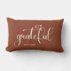 Een modern eenvoudig lumbaal kussen in bruin met het woord "Dankbaar", personaliseren met jouw naam. Dit kussen is de perfecte aanvulling op uw herfst herfsthuisdecoraties, of maakt een prachtig cadeau.