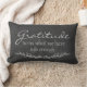 Dankbaarheidscitaat op zwart krijtbord kussen