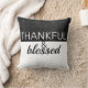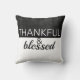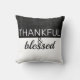 dankbare en gezegende citaat donkergrijs op wit kussen