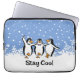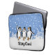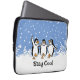 Dancing Penguins Design Laptophoes met aanpasbare achtergrondkleur en tekst.