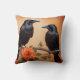 Illustratie van een boeiend digitaal kunstwerk met twee kraaien op een tak, die de blik op elkaar sluiten, tegen een warm oranje decor met levendige rozen. Het overbrengen van een mix van mysterie en schoonheid in deze betoverende omgeving.