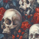 Dark Academia Skulls met Crimson en Blue Flowers Behang