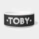 donkergrijze kom voor je hond of kattenvoer of water. Dit voorbeeld heeft Toby op het geschreven maar het kan in de naam van uw voorkeur worden veranderd. Andere kleuren zijn beschikbaar in de opslag.