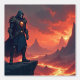 A dark knight — a mysterious fantasy warrior from the burning lands, surrounded by lava and a hellfire landscape. This armored fighter is a true skull warrior, reigning over an epic fantasy and fantasy realm. Full of evil and power, he roams a land filled with fire and volcanic mountains.