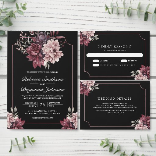 Dark Moody Floral Frame Black WeddingOntworpen door Shabbir D