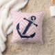 Dark Nautical Blue Anchor Pink Zigzag Chevron Kussen