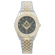 Stijlvol goudvierkant en compass Masonic symbool, gepersonaliseerd pols horloge met een donkere vlakke achtergrond.