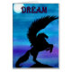Waterverf met Comp. Kunst voor verbetering. Een kweekende Pegasus gesilhoueteerd tegen een kleurrijk onverlicht nachtschap en zegt: "Dream".